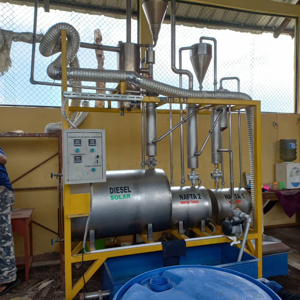 Mesin Pyrolisis adalah mesin yang dibuat untuk membantu mengurai problem tersebut, dengan proses pemanasan yang sesuai dan minim polusi akan dihasilkan bahan bakar solar (diesel) dengan tingkat cetane-number lebih dari 58. Kondisi ini tentunya sebuah solusi yang baik dan merupakan program dari hulu ke hilir yang berkesinambungan